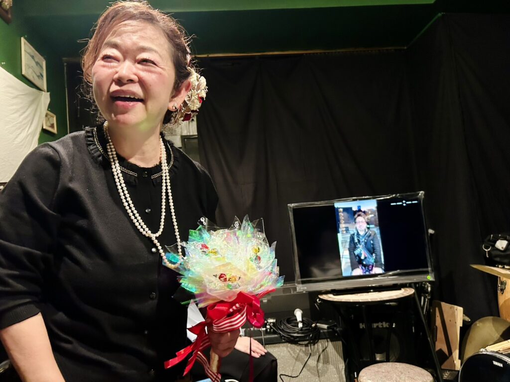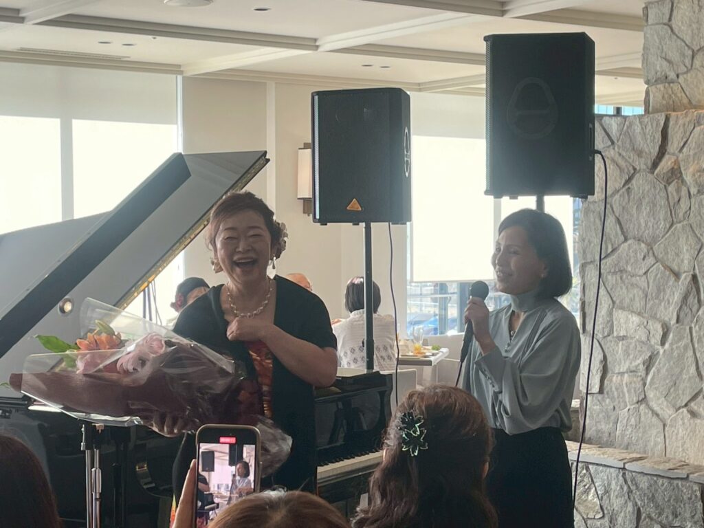 二次会ではシンガー茜純子さんに友人一同あっとうされ😂